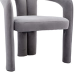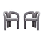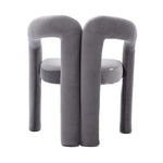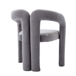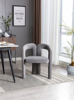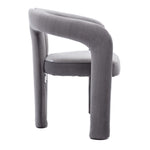 - This contemporary dining chair is expertly designed for ultimate comfort with a unique rounded back and soft, stylish fabric covering.