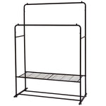 - The higher metal shelf provides more space for boxes and folded clothes, and the lower shelf provides more storage space for shoes.