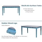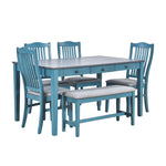 - This compact 6-piece dining set, featuring a vintage 2-tone finish, is expertly crafted with a solid rubberwood frame and legs for long-lasting durability.