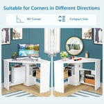 - This versatile corner desk is perfect for work, writing, or makeup!