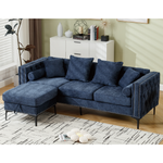 - This modern tufted style L-shaped sectional convertible sofa with storage ottoman is designed for primary living spaces.