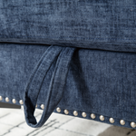 - It features an elegant blue color and is made of metal and wood, with plush medium-soft seat cushions filled with high-quality sponge and covered in skin-friendly, breathable chenille fabric.