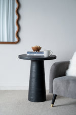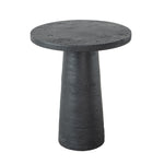 - Expertly crafted from durable 100% Magnesium, this side table features a circular top, a rounded pedestal base, and a dynamic black finish.