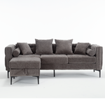 - This modern tufted style L-shaped sectional convertible sofa with storage ottoman is designed for primary living spaces.