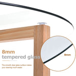 - This tempered glass coffee table features a sturdy wooden tripod frame and can hold up to 66 lbs.