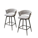 2 Set of Rotating Barstools With Breathable Cotton and Linen Soft Cushions