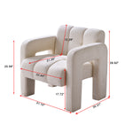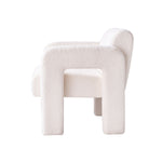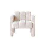 - This upholstered accent chair is made of boucle material and boasts a modern style.