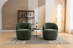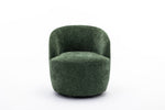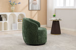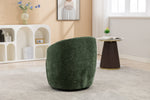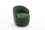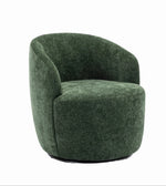 - Modern-style swivel accent armchair features a foam-filled wooden frame and a soft chenille fabric material, upholstered on a black point round swivel base.